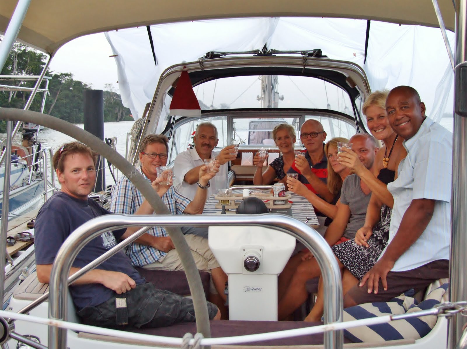Wij waren met alle haven bewoners in het restaurant van de haven en hebben twee keer oud en nieuw gevierd. Eén keer op de Nederlandse tijd en één keer op de Surinaamse tijd. Helemaal leuk.